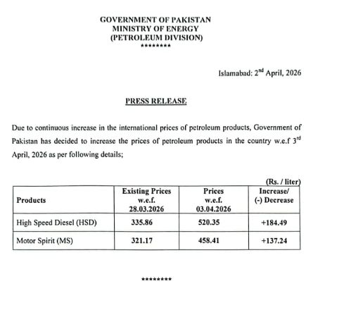 Federal Minister for Petroleum Ali Pervaiz Malik made the announcement during a press conference alongside Finance Minister Muhammad Aurangzeb. He said the government was forced to take difficult but responsible decisions because of the changing situation in the region.