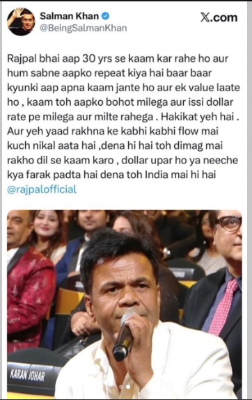 Soon after, Salman Khan support Rajpal Yadav through a heartfelt social media message. He praised Rajpal’s long career and said that good work always brings opportunities, adding that he would continue to get work “at dollar rates.” His words quickly gained traction among fans.