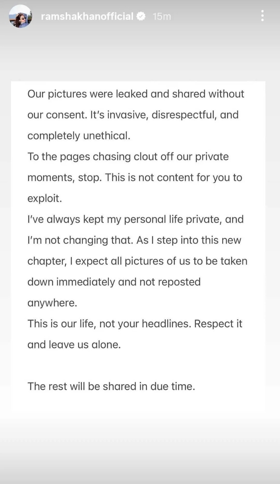 Ramsha Khan strongly reacted, calling the circulation of such images invasive, unethical, and disrespectful.