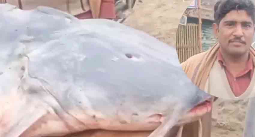 Near Kartarpur in Shakargarh, a young man caught an unusually large fish from the Ravi River, leaving everyone amazed. The giant fish reportedly weighs around 65 kilograms, far heavier than fish normally found in the river.