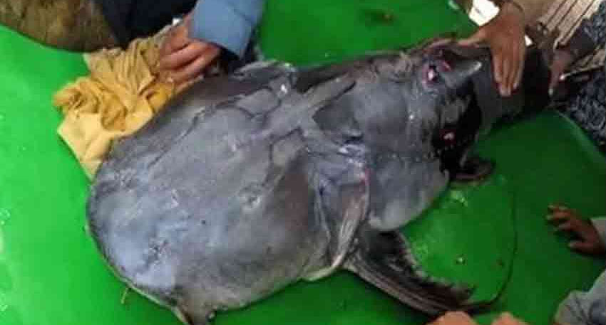 The fisherman, identified as Arif, is a hobby angler who often visits the riverbank to fish. He said that while fishing early in the morning as usual, he suddenly felt an unusually strong pull on his hook. After a long struggle, he managed to pull the fish out of the water—and was shocked by its massive size himself. Arif said the fish belongs to a good breed and has a unique feature: it has only one hook-like fin, which makes it different from other species.