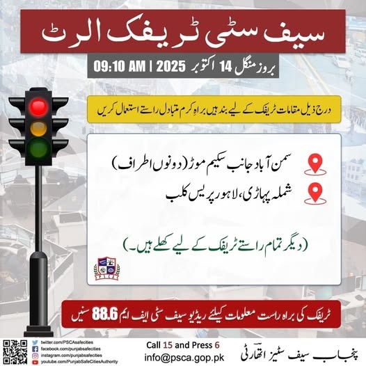 The PSCA confirmed that movement is now smooth toward Thokar Niaz Baig, Babu Sabu, Chungi Amar Sidhu, Lal Pul, and Shahdara, which had previously been restricted due to congestion and security operations. Similarly, Lalyani Road, Saggian Bridge and Canal Road (from Thokar to Jail Road) are also open for regular traffic flow.