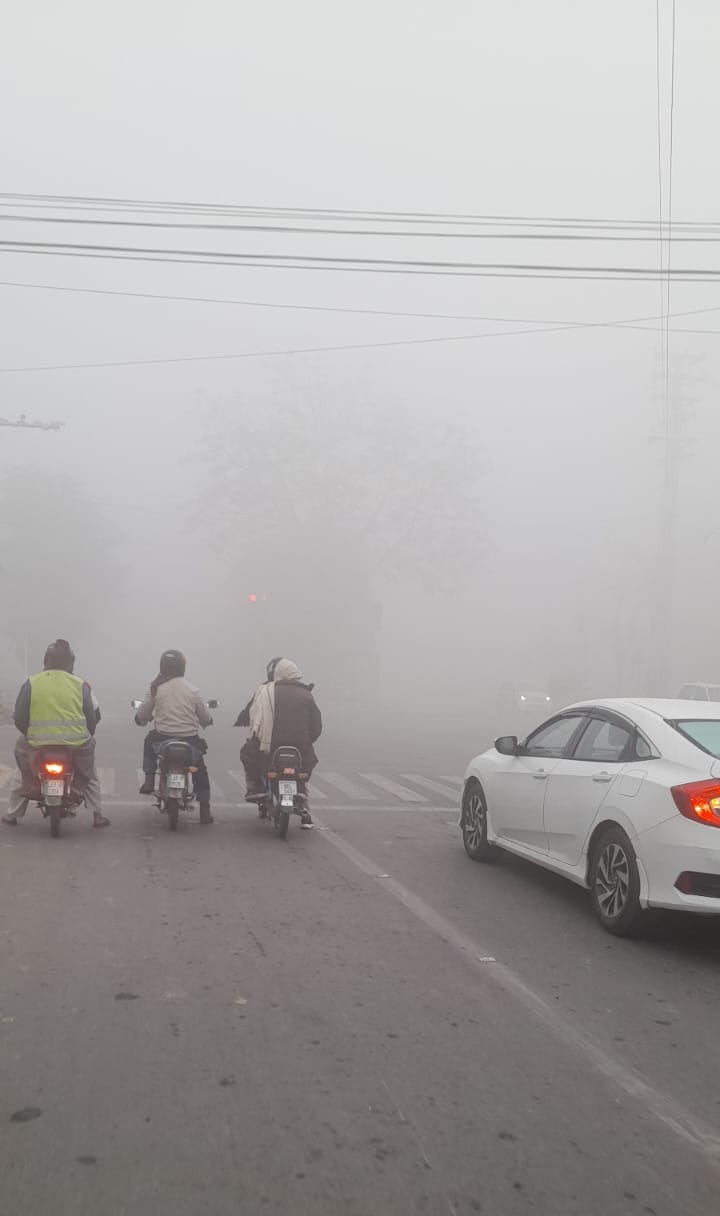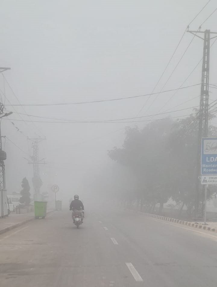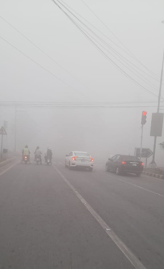 Daily life in Lahore was severely disrupted on Tuesday as thick fog blanketed the city, drastically reducing visibility and making commuting increasingly challenging, especially during early morning hours.